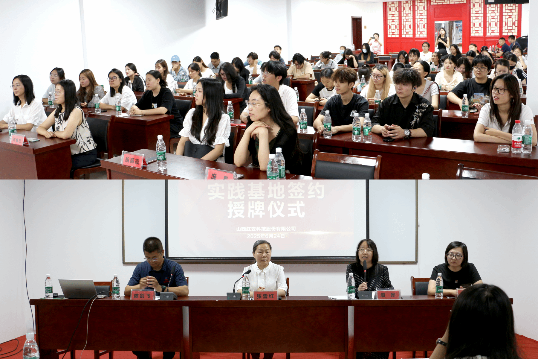 学科发展现状和市场营销专业实践育人特色。山西虹安科技股份有限公司副总经理张雪红女士发表了热情洋溢的讲话。她结合个人成长经历与公司发展历程,深情回顾了创业初期的艰辛与跨越矿山、消防、危化、水域等多领域发展的奋斗征程。公司注重创新平台的建设,以责任与诚信,一步步扎实前行了28年。2022年,山西虹安科技股份有限公司凭借着在呼吸防护装备领域和真火训练项目研发的傲人成绩,入选了工业和信息化部专精特新“小巨人”企业。如今,公司全面向好,并向多场景应急救援技术服务企业转型。张雪红勉励在场学子坚定信念,勇于开拓,走出一条属于自己的精彩人生之路,迎接广阔天地。此外,张总和到访师生交流了公司在市场拓展过程中的典型案例。