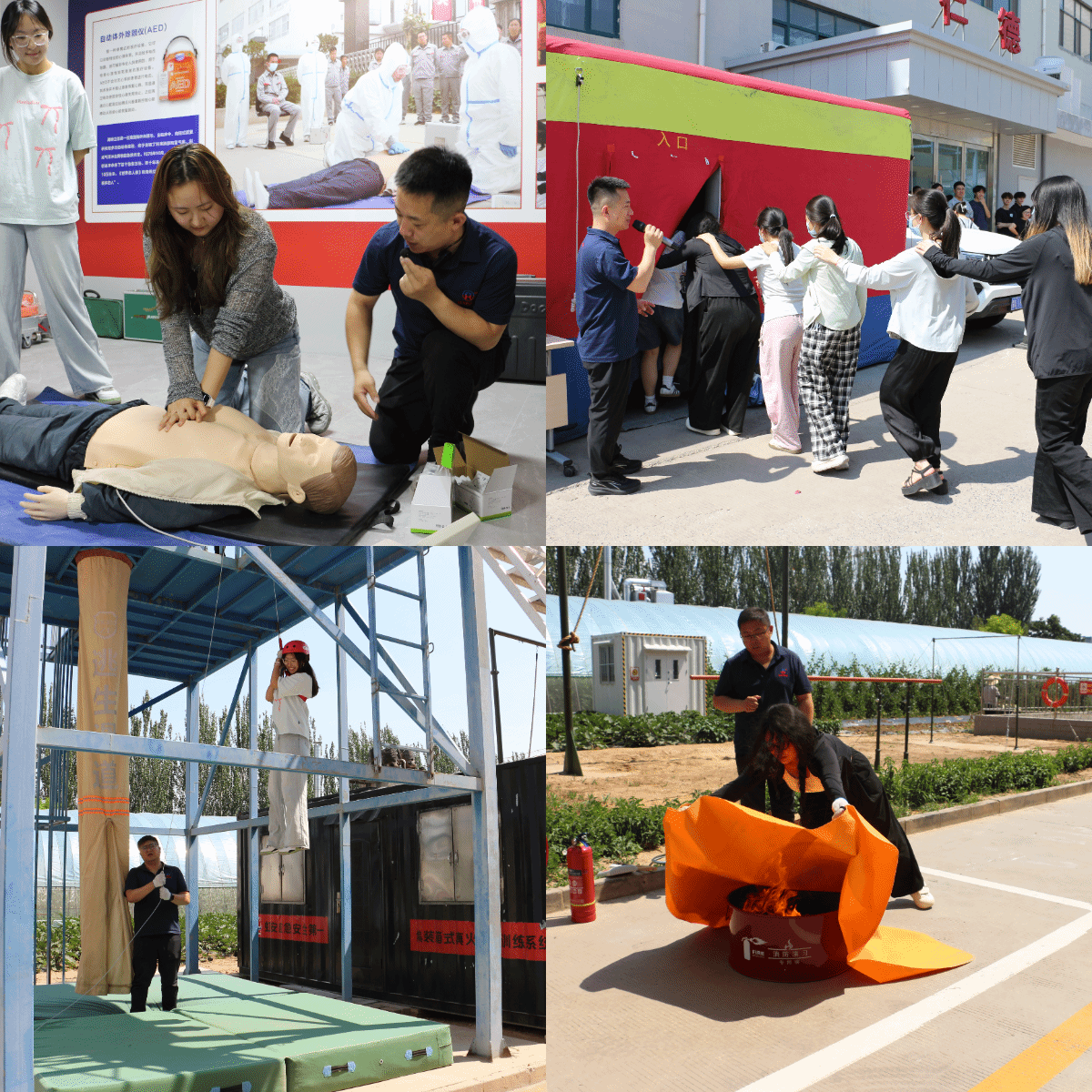 此外,公司精心安排了丰富的应急救援体验活动。教练们带领大家实际穿戴应急救援产品、进行结绳训练、学习院前急救知识、感受VR灭火逃生、体验消防帐篷逃生及缓降器、灭火毯实操等环节,通过实际体验,参访师生对“人人学急救,人人懂救急”有了深刻的体会。