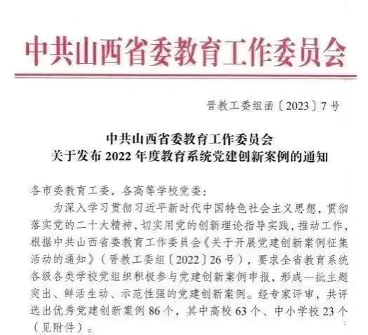 近日,中共山西省委教育工作委员会公布了2022年度全省教育系统党建创新案例评选结果。免费麻将游戏下载