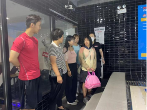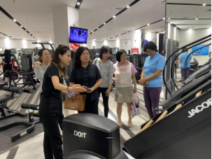 一行参观了瑜伽、舞蹈、搏击、器械训练、垫上普拉提、游泳等各个功能区,并对各个运动项目练习的注意事项进行了了解。