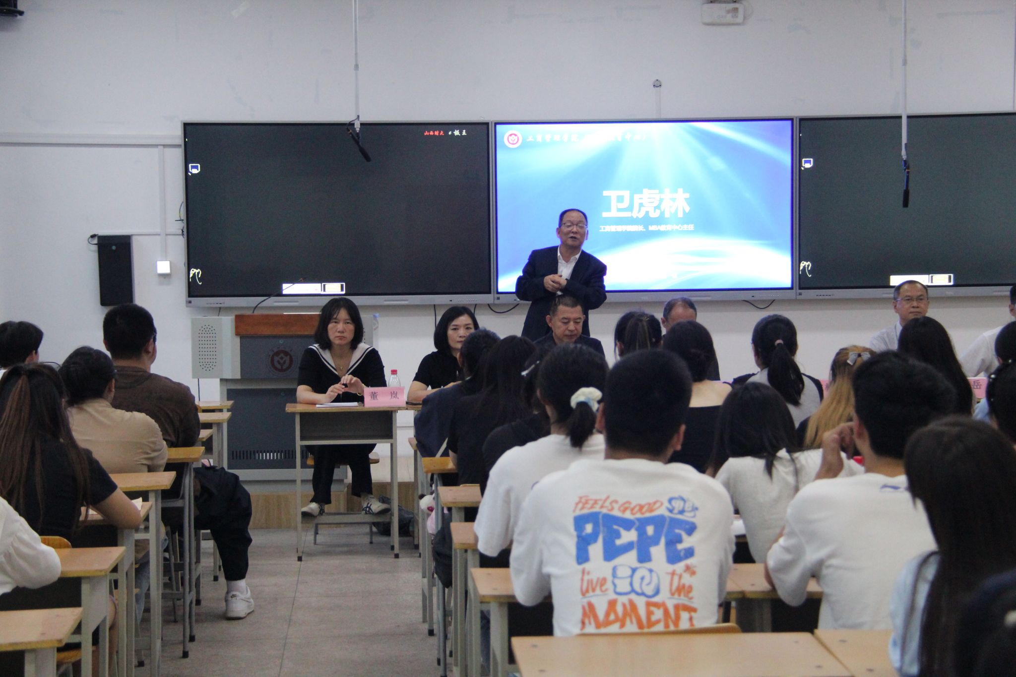 院长卫虎林教授首先对今年入学的239名本科新生表示热烈欢迎,并以“大学,从学会做人开始”为主题,给全体新生上了入学第一课。