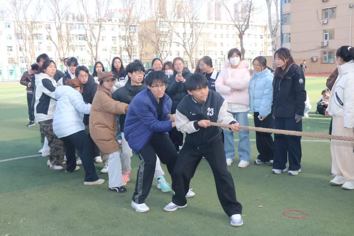 本次运动会共设五个项目:双人背靠背夹球跑、团队跳绳“8字穿梭”、同心拔河赛、接力跑及绕柱接力传球。各班参赛队伍全力以赴,默契配合。双人背靠背夹球跑中,选手们需协同用背部夹紧皮球前行,球若掉落则迅速返回起点重新开始;“8字穿梭”跳绳时,摇绳者保持匀速,穿梭队员按路线依次穿过,断绳后快速衔接;同心拔河赛中,每队10人紧握长绳,在呐喊声中合力拼搏,直至标志绳越过规定界线;接力跑与绕柱接力传球项目中,队员精准完成交接,严格遵守赛道规则,稳步冲刺终点,整场比赛趣味盎然、秩序井然。