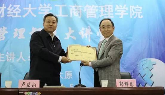 “管理智慧大讲堂”。讲座开始之前,卢庆山副校长受刘维奇校长委托,代表学校为郭祥恩校友颁发了兼职教授聘书,岗位设在免费麻将游戏下载