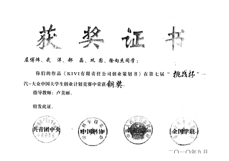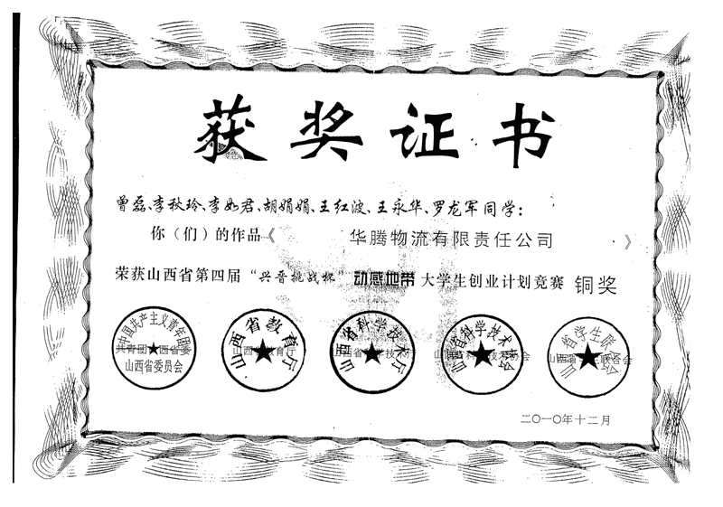 山西财经大学工商管理专业在校学生获奖证书