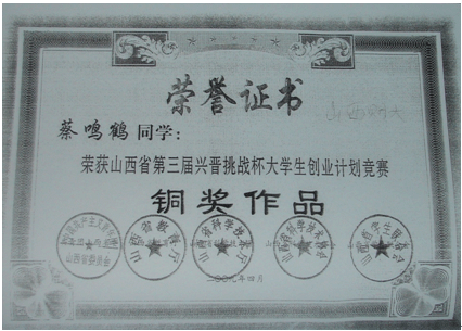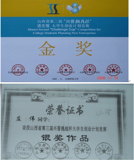 山西财经大学工商管理专业在校学生获奖证书及照片