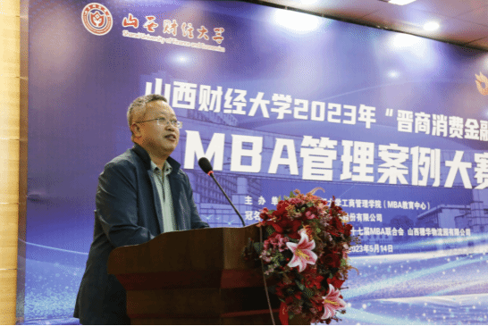 院长、MBA教育中心主任卫虎林院长致辞。他指出,山西财经大学MBA教育必须紧紧抓住山西资源型经济转型发展的特点,突出数字化智慧化前沿趋势,扎根三晋大地,创新应用研究,培养具有晋商精神的卓越管理人才。在实现培养目标的过程中,与本土优秀企业联合举办案例大赛,加强本土企业案例开发和案例研究是重要抓手。卫院长详细介绍了MBA管理案例大赛的发展历程,指出MBA管理案例大赛是我校MBA人才培养的特色活动之一,MBA管理案例大赛以本土企业为案例样本,实现MBA师生与本土优秀企业协同成长,在以赛促学、以赛促教、产教融合、校企合作方面取得新的突破。他希望以此为契机,进一步深化产教产学融合,互相赋能,共同努力,为山西的“两个基本实现”做出更多更大的贡献。