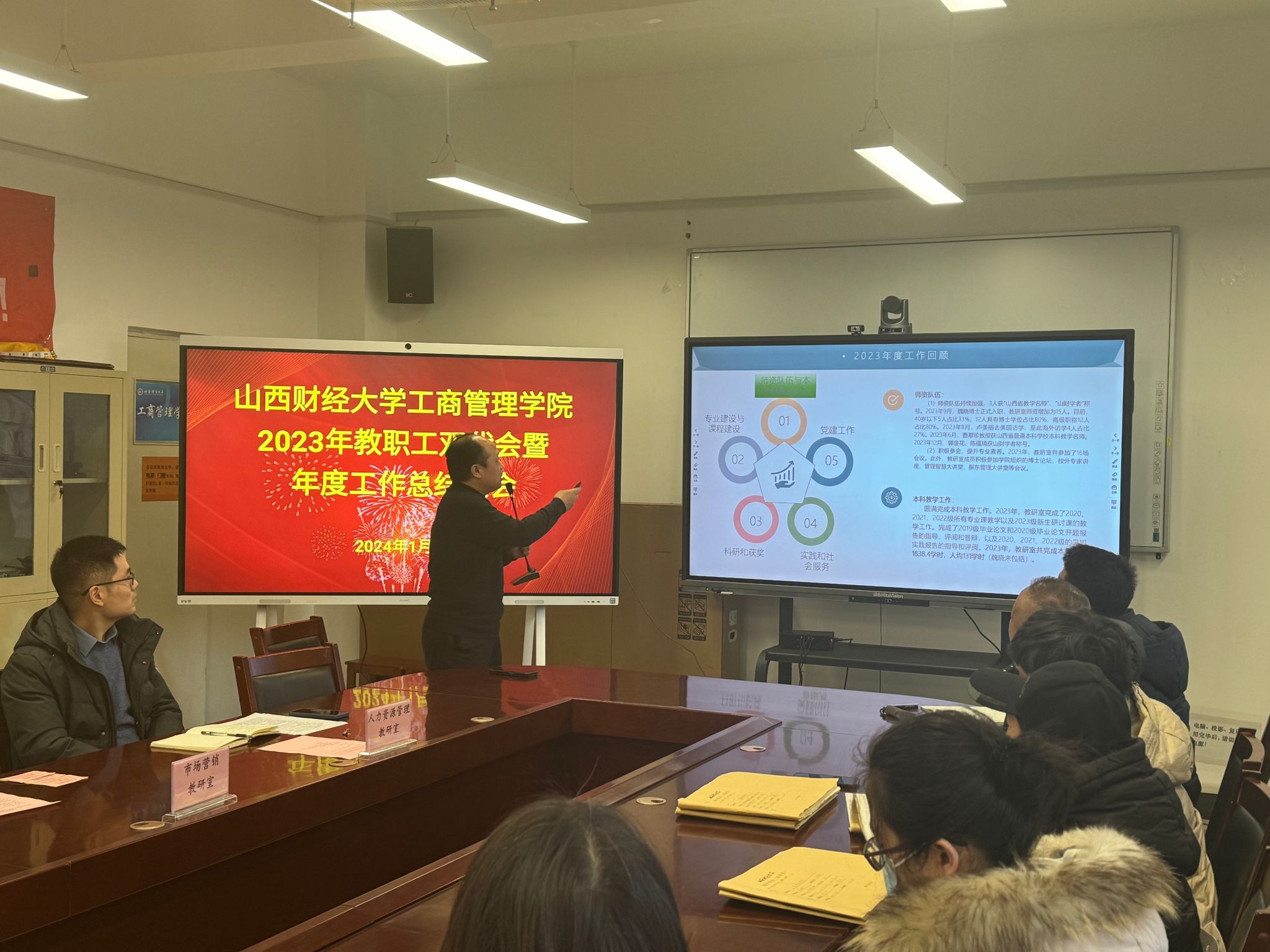 会议分两个阶段进行。第一阶段为近期工作安排、工会工作报告和教研室汇报工作。会上,薛继东副院长、齐永智副院长对近期工作进行了安排;院工会就工会工作及专门委员会人选进行了报告;管理原理、管理实务、市场营销、物流管理、人力资源管理5个教研室负责人分别就2023年的教学科研、专业建设、人才培养、师资队伍、社会服务、考研就业等方面所取得的成绩和存在的问题,以及2023年工作计划等进行了汇报。薛继东副院长对管理原理教研室、市场营销教研室、物流管理教研室工作报告进行了点评;齐永智副院长对管理实务教研室、人力资源管理教研室工作报告进行了点评。第二阶段薛继东和齐永智分别对自己所分管工作进行了总结报告,对假期相关工作进行了部署。