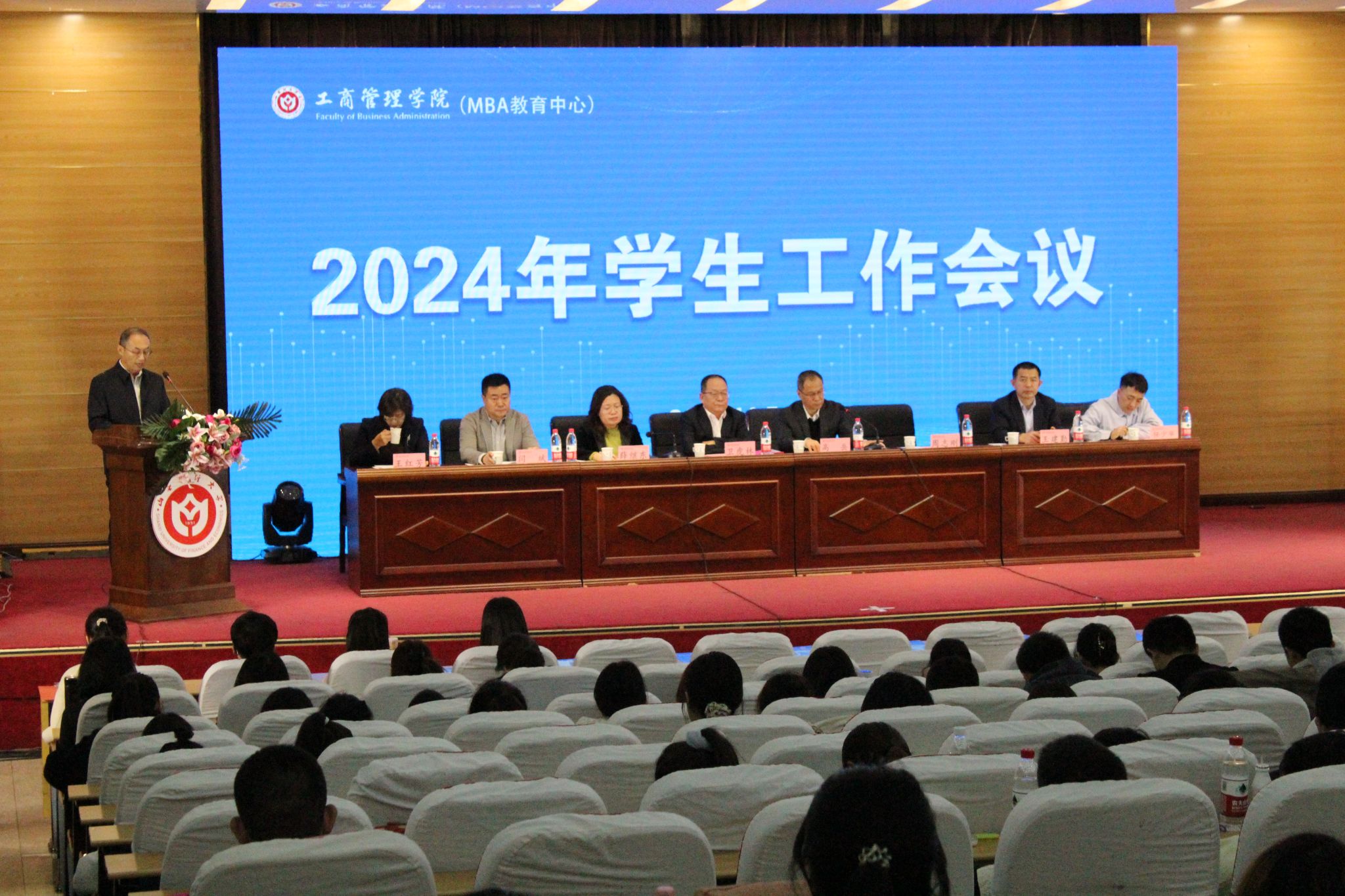 领导班子成员、2024级本科生和学术研究生、团学干部、MBA学生代表等参加会议。我校MBA校友会会长、MBA教指委校外专家、山西北林建设工程有限公司董事长王建勤,优秀校友代表、MBA校外专家、山西海之韵信息技术股份有限公司董事长闫斌等应邀参加会议。会议由免费麻将