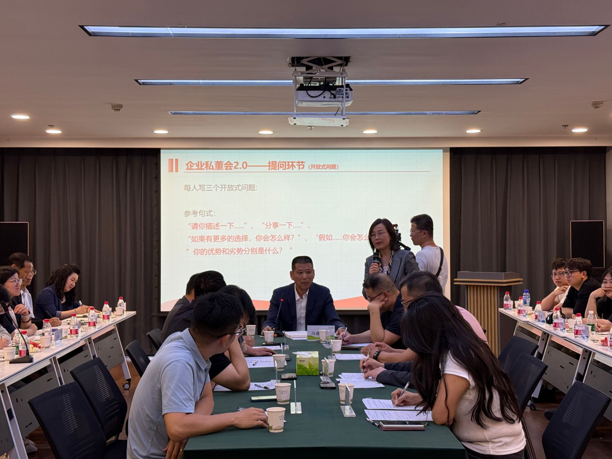 座谈会特别增设“管理智慧沙龙—企业私董会”专题环节,由MBA校友常秀荣担任主持。作为私董会案主企业,冯遵刚与参会的校友企业家代表、教师代表,围绕“行业下行形势下,如何做好企业品牌从而提升市场竞争力”展开深入讨论。副院长薛继东、齐永智分别就企业如何打造优质品牌提出了具体建议。