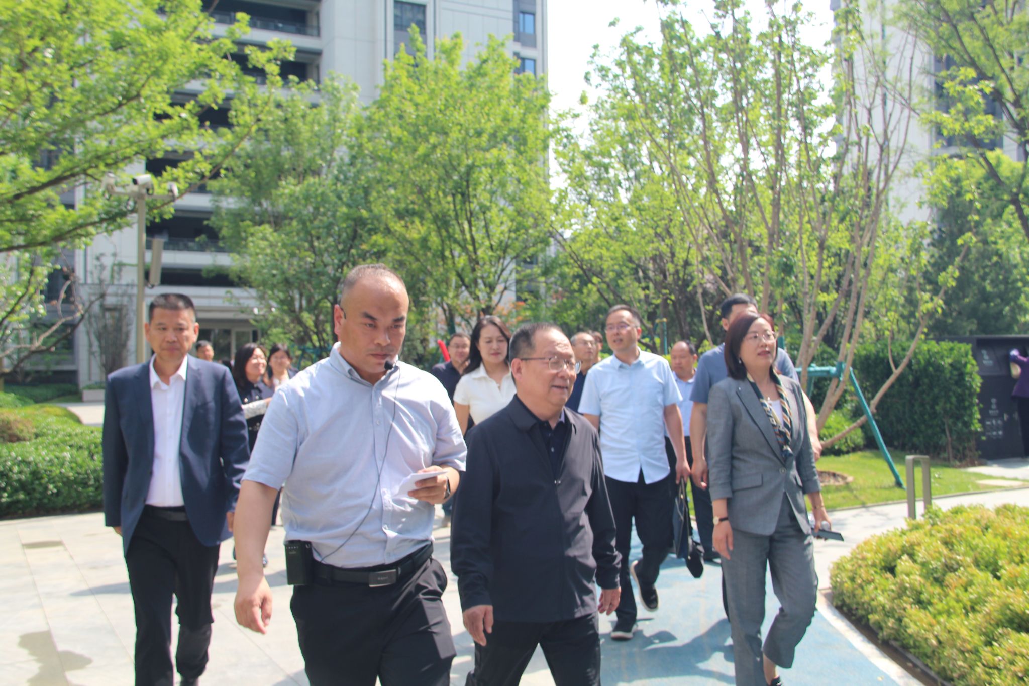 一行首先参观了其标杆项目保利天珺景观工程。该项目通过“方与圆”的几何语言、水台叠瀑景观及树影停留空间等细节,充分展现了公司追求“细致、精致、极致”项目设计理念,给参访团队留下了深刻印象。