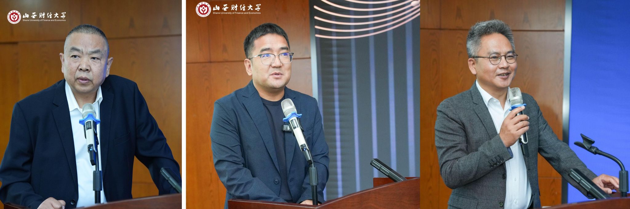 薛继东副院长主持第二环节主题报告。三位嘉宾围绕主题、结合企业实践做了分享。山西毅圣数智消防股份有限公司董事长陈仲毅以《智慧消防:过去、现在和未来》为题,以消防行业的演进为主线,形象的剖析了传统消防向数智化升级的必然趋势。通过物联网、AI技术的应用,消防行业从被动响应转向主动预警,实现了安全管理模式的革新。山西太斯实业有限公司董事长张贵忠以《财大基因之酒店赛道:来自校友的非典型创业方法论》为题,以校友身份回溯“财大基因”对创业的影响,强调了“数据驱动决策”与“场景化服务创新”两大核心逻辑。通过剖析酒店行业的实践案例,用他的创业方法论为在座学生提供了宝贵的借鉴。山西智胜传媒科技股份有限公司董事长郭海明以《“青鸟”领航,赋能文旅营销服务升级——智胜传媒在AI领域的探索》为题,分享了公司在数字人技术领域的创新实践。重点介绍了山西首个超写实虚拟数字人“青鸟”的诞生和应用过程,从“青鸟”的技术创新、商业创新到应用创新,全方位呈现了AI交互技术为传媒行业带来的智能化变革。“青鸟”的成功为传统文化与现代科技的融合提供了范例。