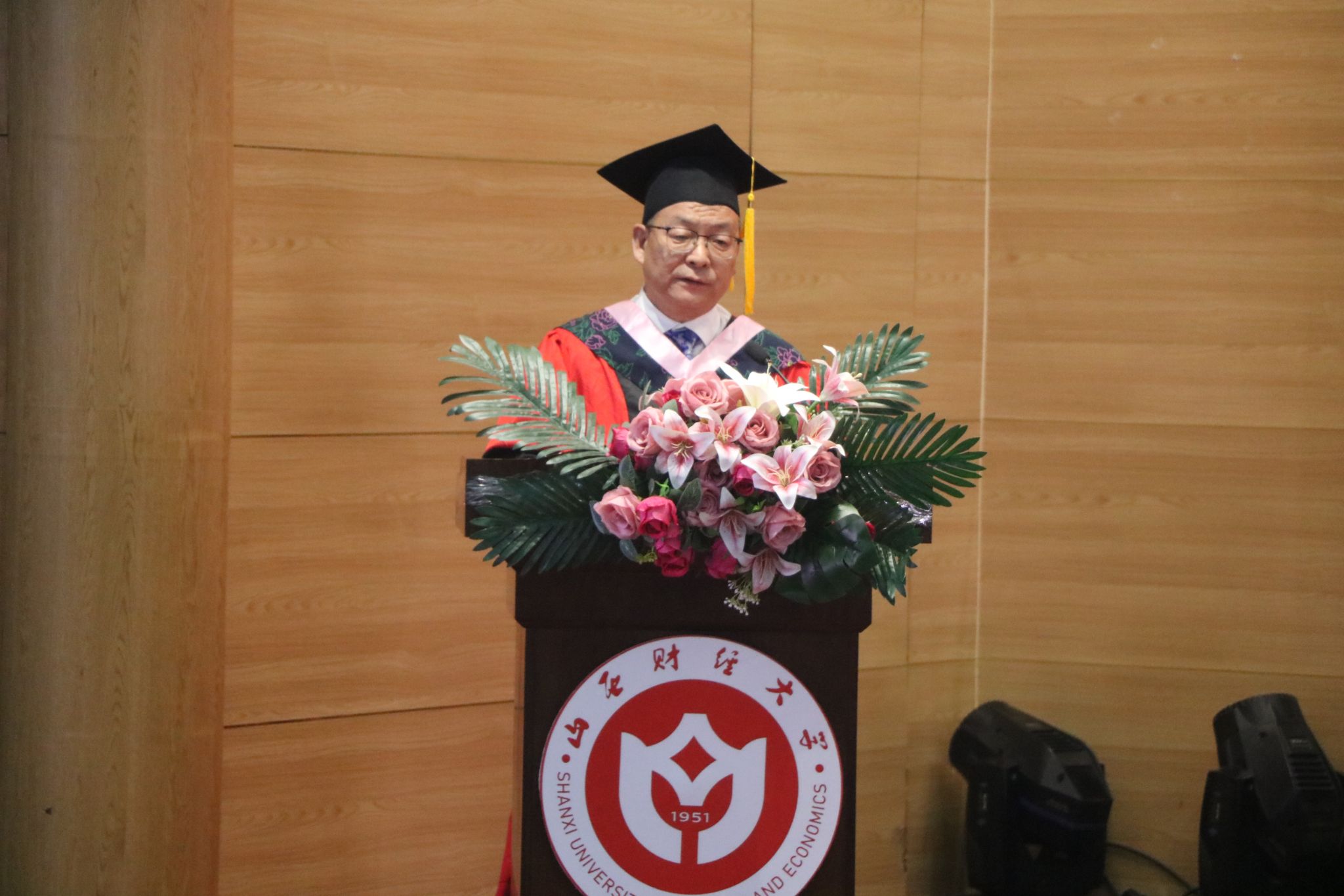 为2025届毕业生准备了丰富多彩的嘉年华活动。在庄严的国歌声中,毕业典礼正式开始。院长卫虎林向2025届全体毕业生致以热烈祝贺,并提出四点殷切期望:一是要以修德立信为基,恪守道德底线,以诚立身、以信兴业,夯实人生发展根基;二是以博学求真为径,践行终身学习理念,秉持"苟日新,日日新"的进取精神,在求知探索中不断突破自我;三是以创新创造为刃,勇立时代发展潮头,以无畏勇气直面挑战,开拓事业新局;四是以担当报国为魂,以青春之力勇担时代重任,将个人理想与家国命运紧密相连,书写奋斗人生的璀璨篇章。讲话最后,他寄语毕业生们始终坚守"诚实守信、开拓进取、和衷共济、务实经营、经世济民"的晋商精神,在未来征程中奋勇前行 。