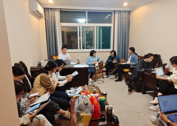 9月18日下午,团队抵达山西财经大学国际学术交流中心。当晚8点,组委会正式发布比赛案例《从丝绸匠人到AI先锋:万事利丝绸数智化协同创新之路》。两支队伍迅速进入备战状态,立即展开资料研读与思路梳理。经过多轮深入讨论和反复推敲案例内容,代表队逐步明确了各自的破题方向并形成了分析框架。