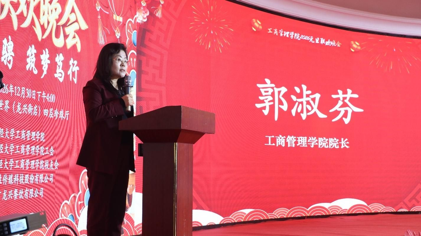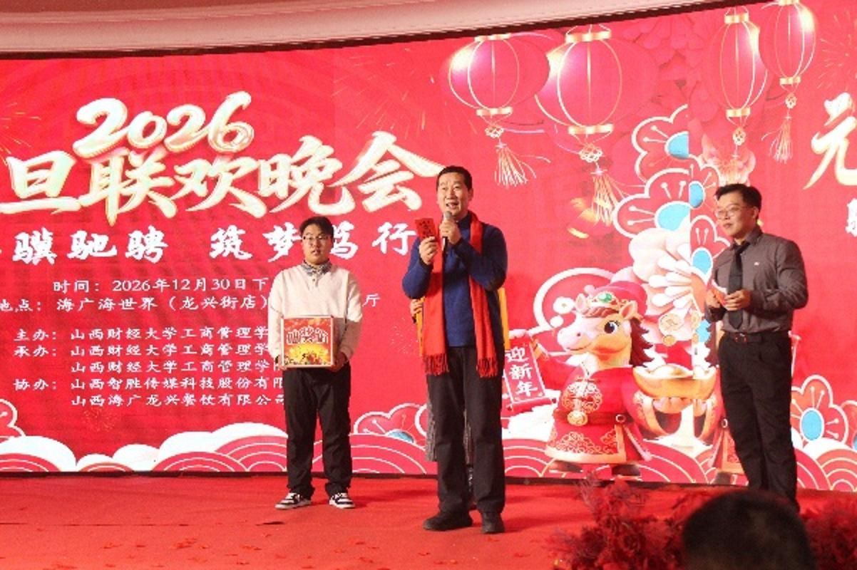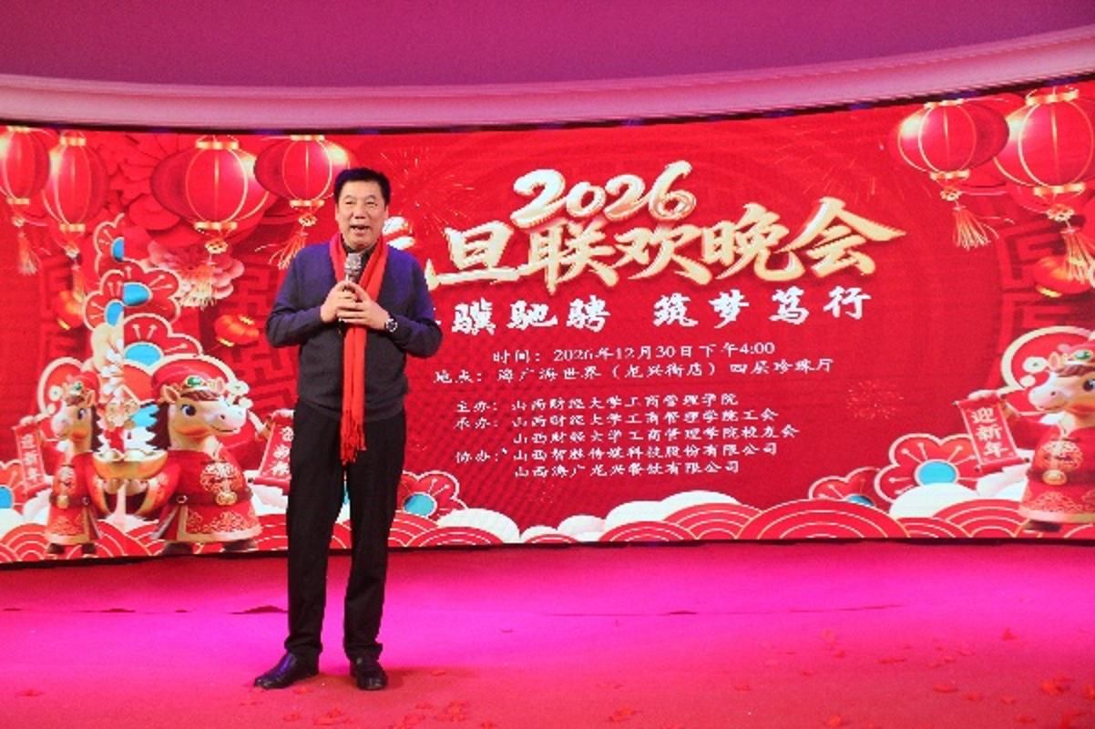 全体教职工与校友代表、嘉宾欢聚一堂,隆重举办了以“骐骥驰骋,筑梦笃行”为主题的2026年元旦联欢会。原山西财经大学党委常委、副校长杨俊青,山西财经大学工会主席董兆军,山西财经大学就业创业中心主任史成安出席活动,并为师生们带来了亲切问候和新年祝福。