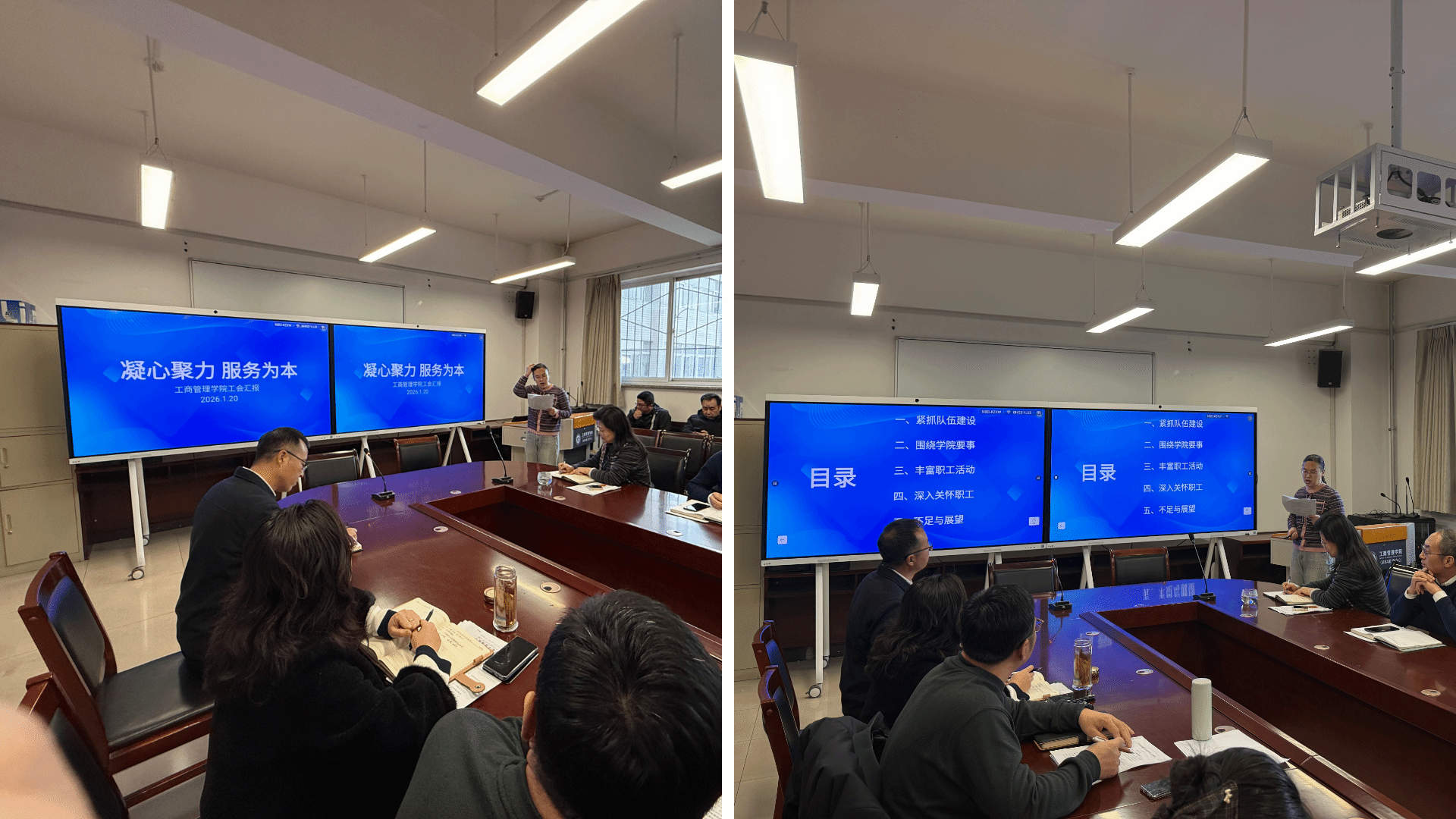 党委书记李群生主持。院工会主席闫向连作工会工作报告,汇报回顾了2025年的工作,展示了新一年的工作设想。
