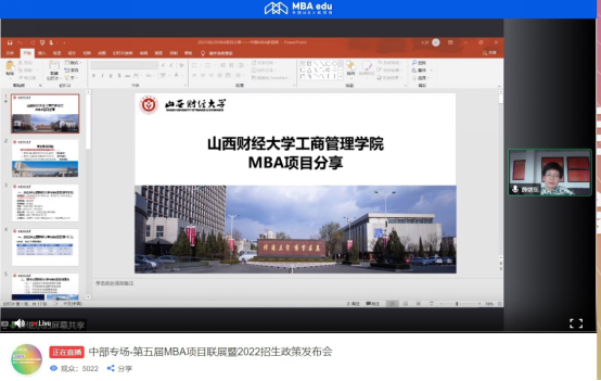 【第五届MBA项目联展暨2022招生政策发布会】山西财经大学MBA2022政策解读(中部专场)回放链接如下:
