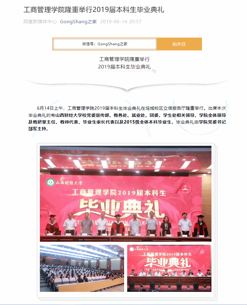2019届本科生毕业典礼在坞城校区立信报告厅隆重举行。出席本次毕业典礼的有山西财经大学校党委宣传部、教务处、就业处、团委、学生处等有关部门领导,免费麻将