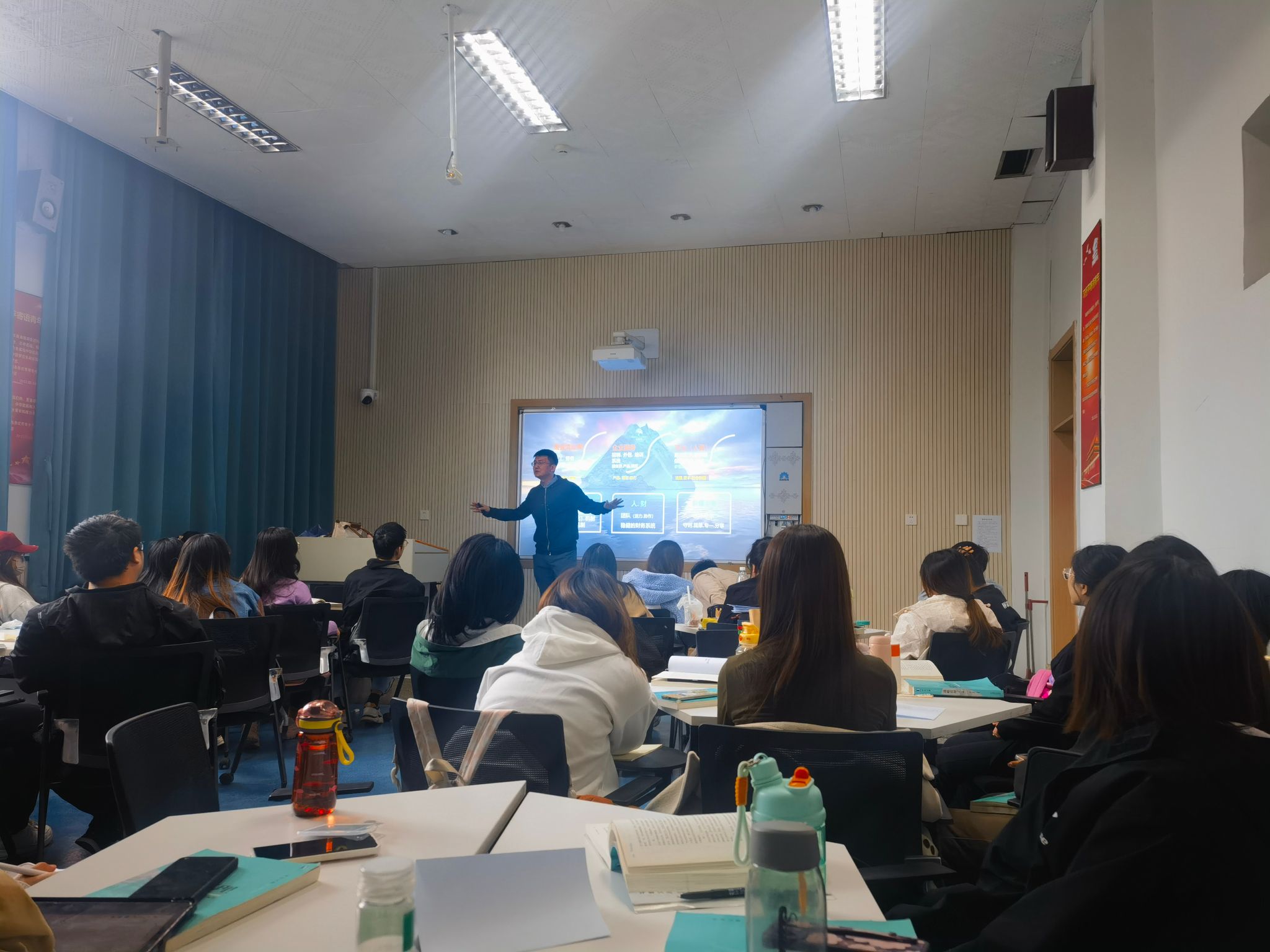 4月3日下午,水木年华信息技术有限公司创始人刘强作为《战略管理》校企共建单位主讲教师,走进2022级工商管理专业本科生的《战略管理》课堂,以“做一个幸福的创业者”为题开展主题讲座,并与现场师生进行了交流互动。