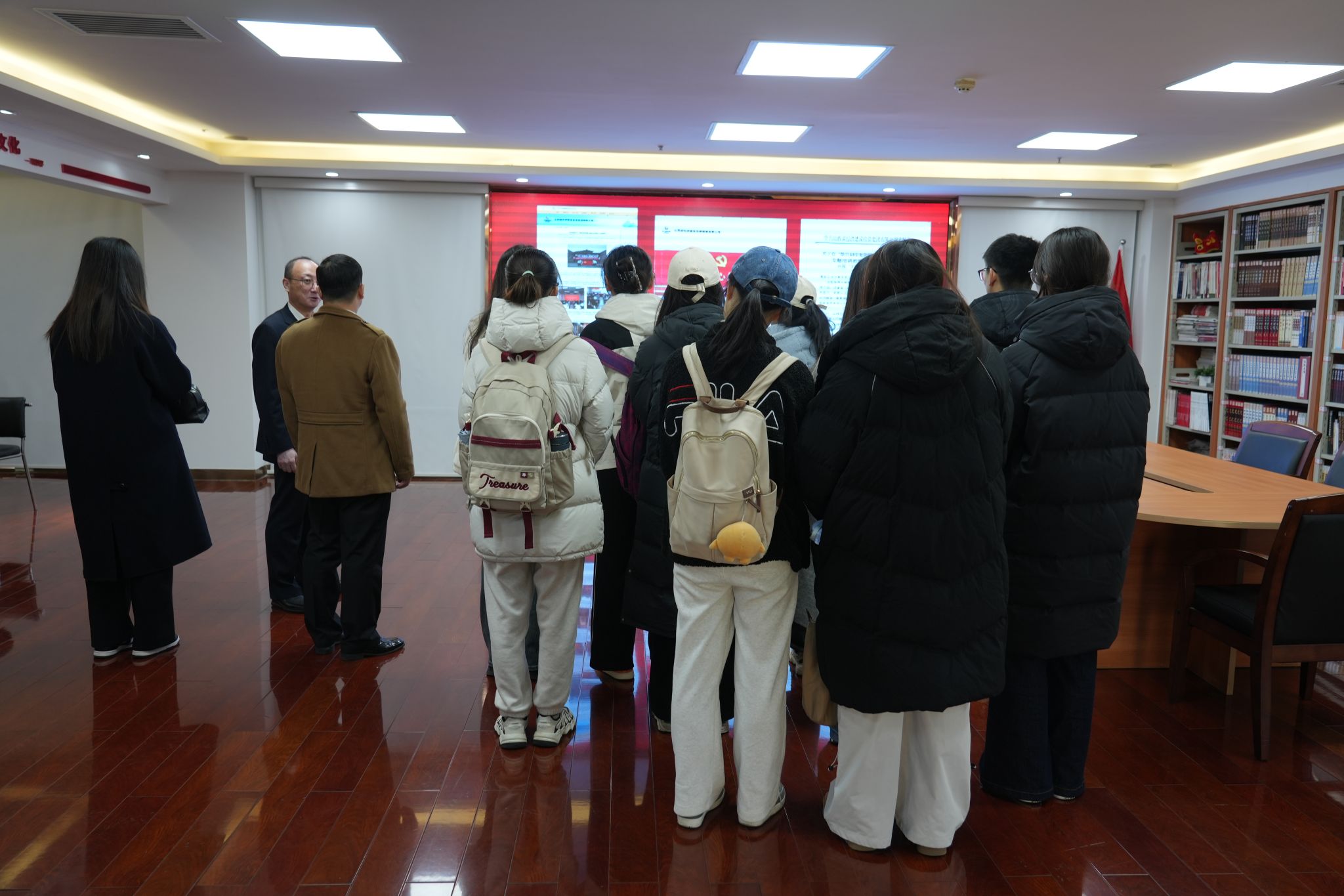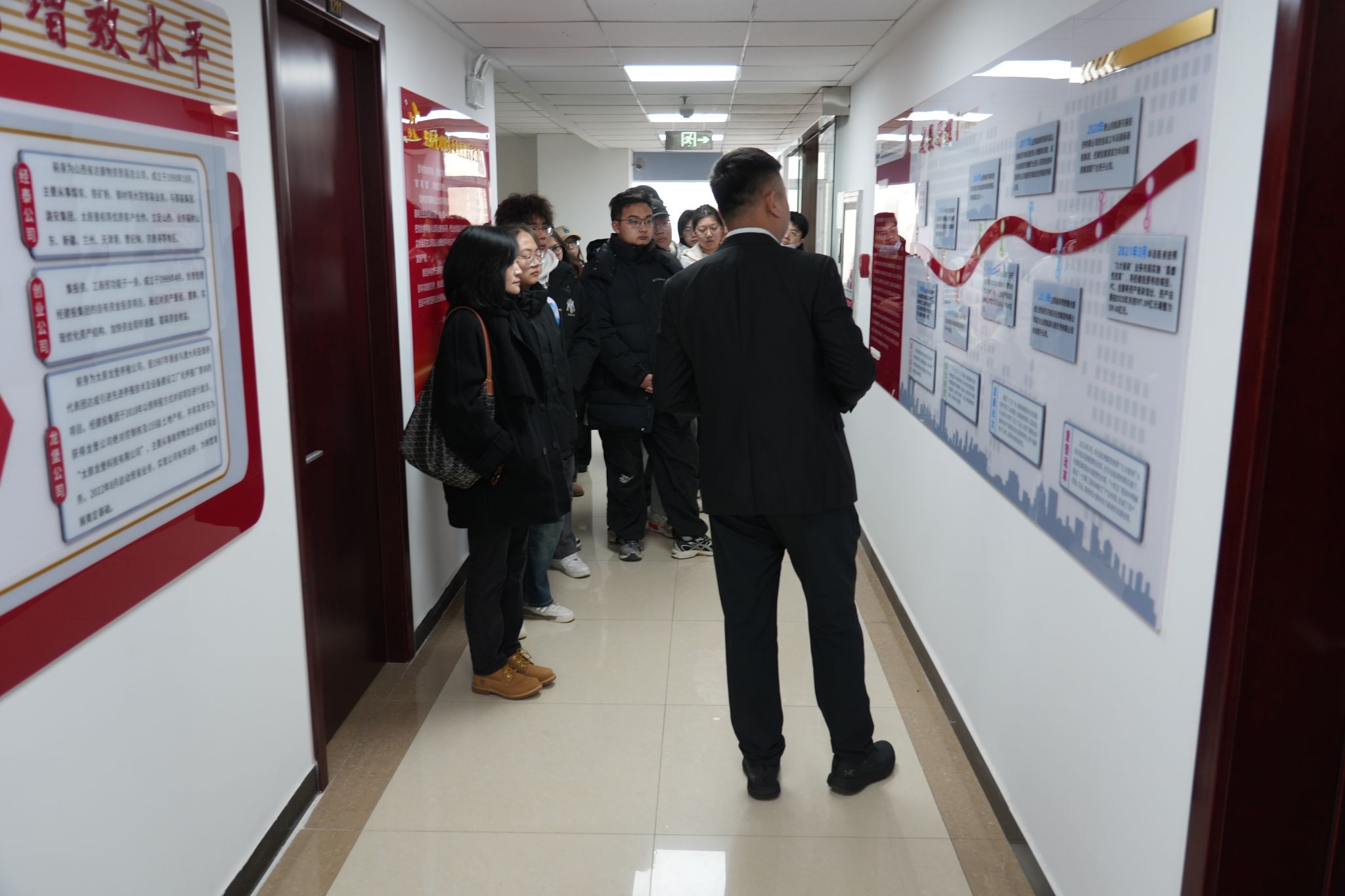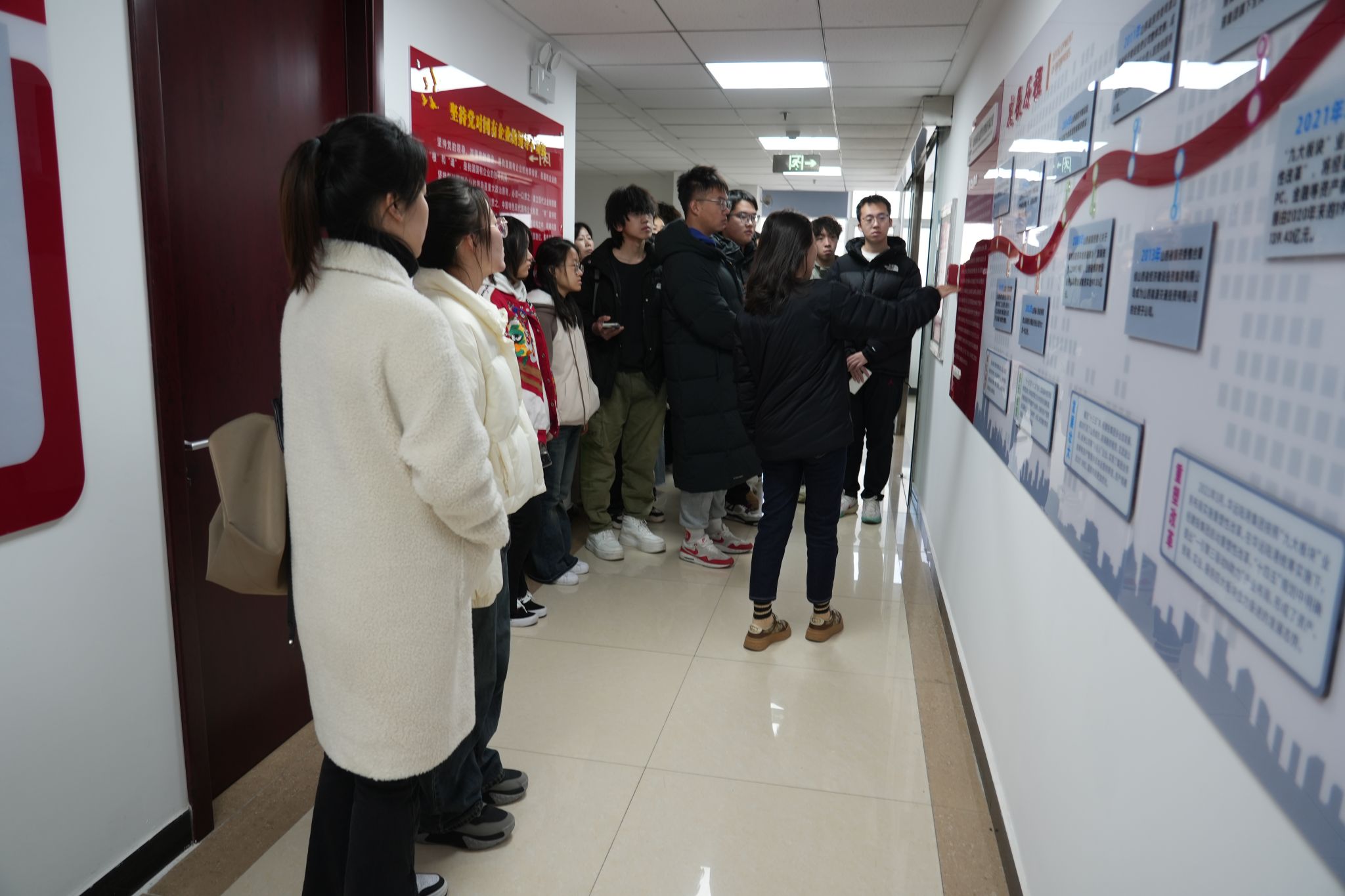 师生分三批对集团各部门、文化墙、产品样品陈列进行了参观、介绍,并观看了企业宣传片。同学们对于经建投集团的发展历程、四大业务板块、业务的发展与转型、党建工作、工会荣誉以及免费麻将游戏下载