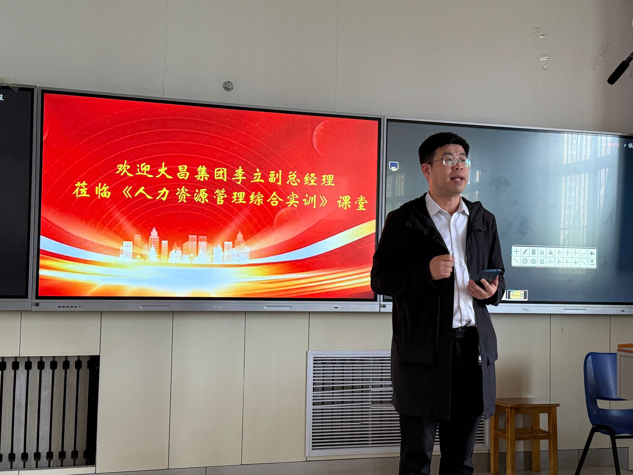 4月22日下午,应闫向连老师邀请,大昌集团李立副总经理走进2022级人力资源管理专业《人力资源管理综合实验》课堂,为同学们带来主题为“山西大昌集团人力资源管理演变与创新”的专题讲座,人力资源管理专业负责人王红芳老师主持讲座。