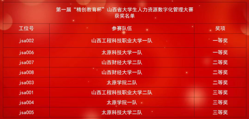 主办、浙江精创教育科技有限公司承办的第一届“精创教育杯”山西省人力资源数字化管理大赛于6月27日圆满举行!共有来自山西财经大学、太原科技大学、山西工程科技职业大学、太原免费麻将