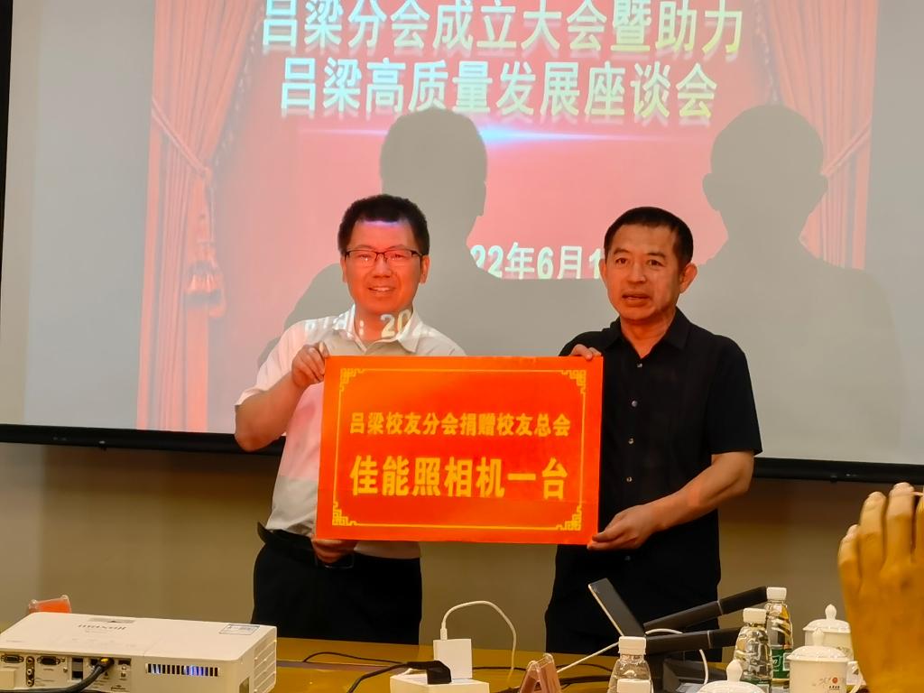 会上,还举行了山西财经大学MBA校友会吕梁校友分会授牌、授旗以及分会向MBA校友会捐赠仪式。(山西财经大学MBA校友会 王倩供稿)