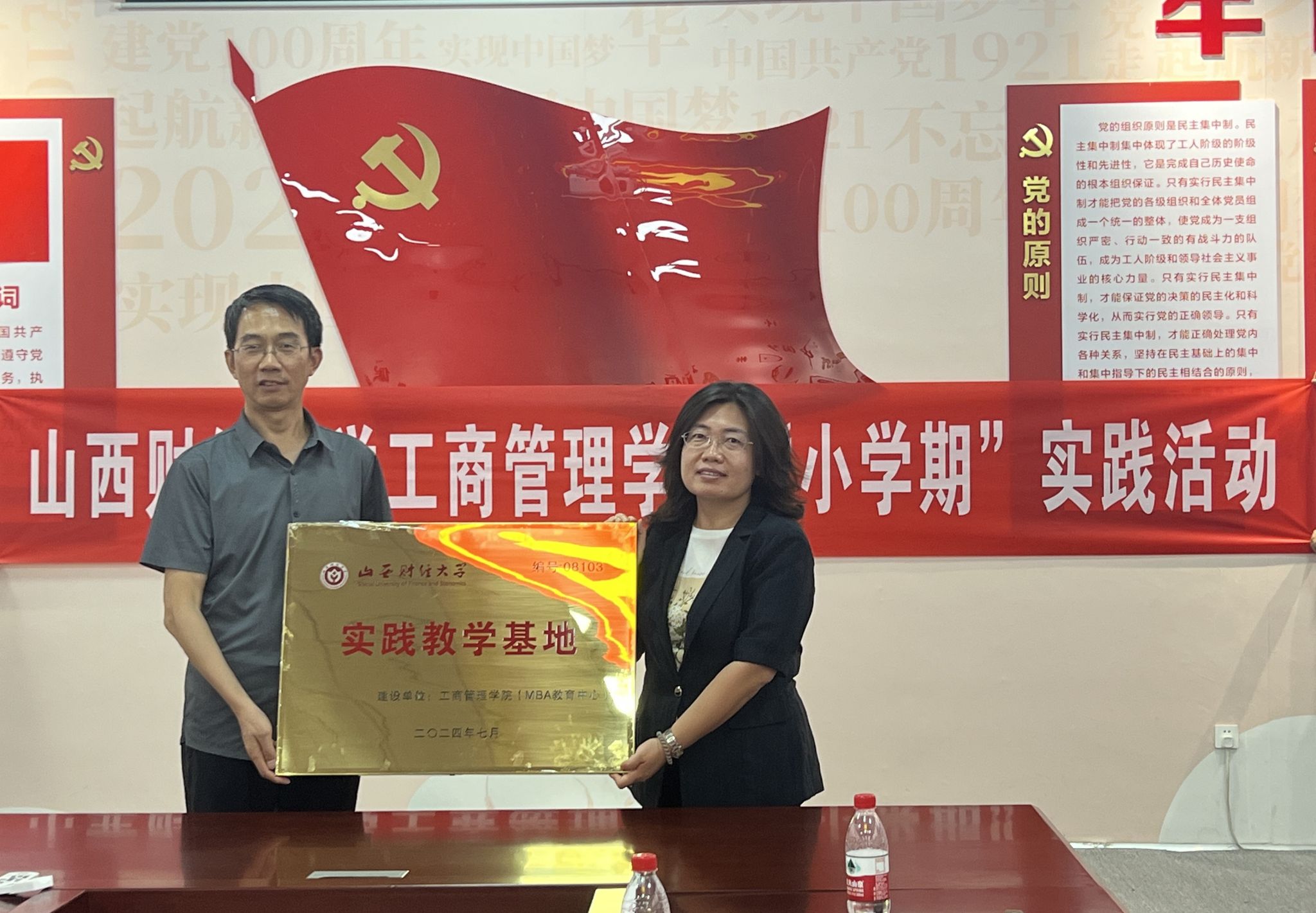 交流结束后,薛继东副院长为山西海玉园食品有限公司颁发“山西财经大学实践教学基地”牌匾,并为公司人力资源管理部门负责人王晓颁发“校外实践导师”聘书。