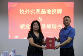 会议结束后,薛继东副院长为山西众瑞人力资源管理有限公司校外实践基地授牌并为王晓斌董事长颁发校外实践导师聘书。(张宇星 供稿)