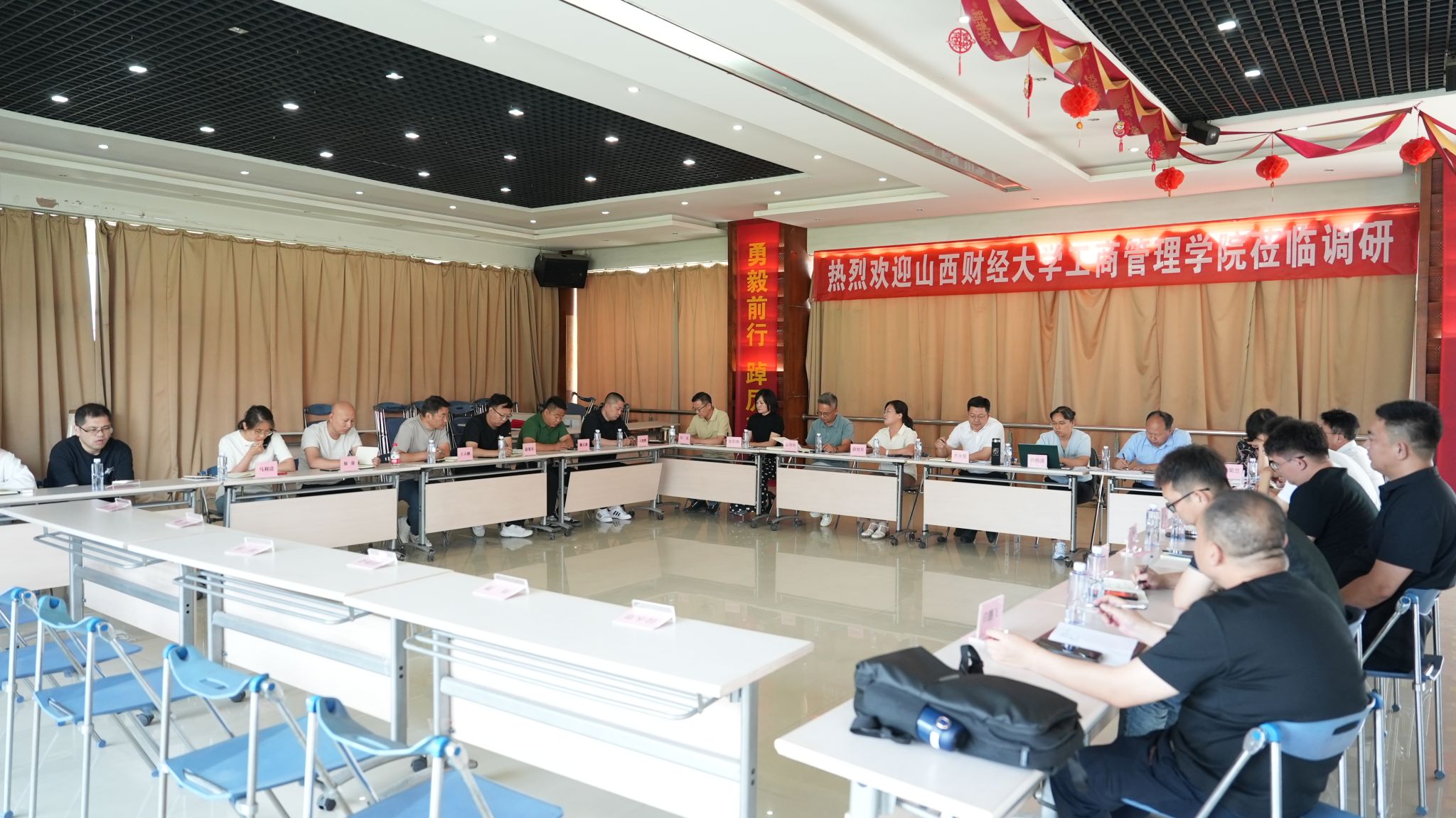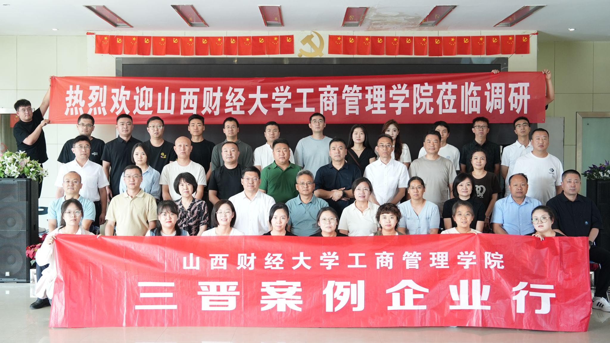 领导、教师代表及部分研究生等10余人走进山西智胜传媒科技股份有限公司(简称“智胜传媒”)和山西传喜货运有限公司(简称“传喜物流”),与董事长郭海明及34名中高层管理人员举行了座谈,旨在精准诊断智胜传媒、传喜物流管理瓶颈,为院企合作开展中高层管理干部研修班提供定制化培训依据。