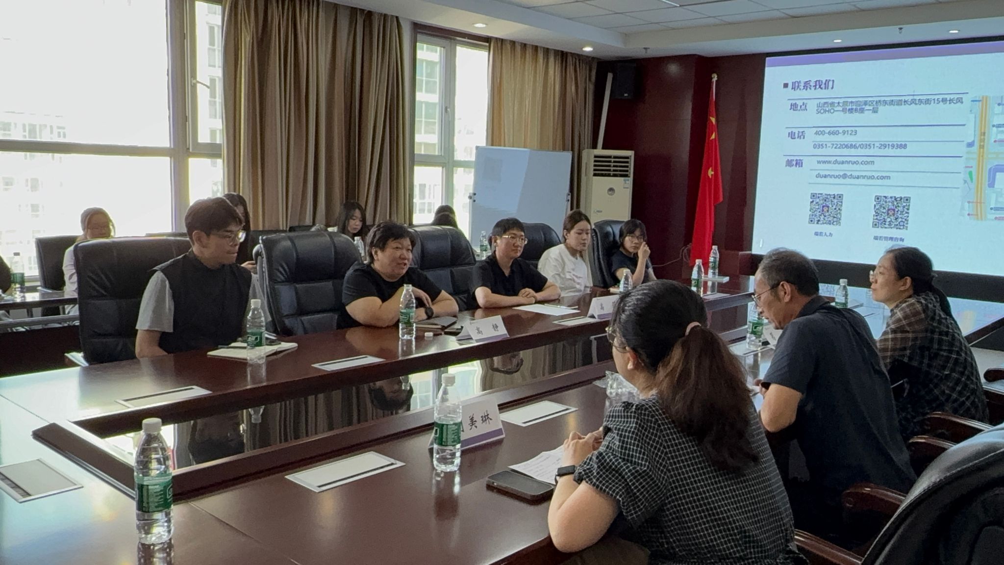 企业展厅内,陈列的省级人力资源服务标杆企业证书、行业创新大奖等荣誉勋章展示了端若的发展轨迹与服务品质。高静特别分享了公司深度参与政府就业促进计划、职业技能培训工程等项目案例,凸显人力资源服务机构在服务地方经济高质量发展中的关键角色。