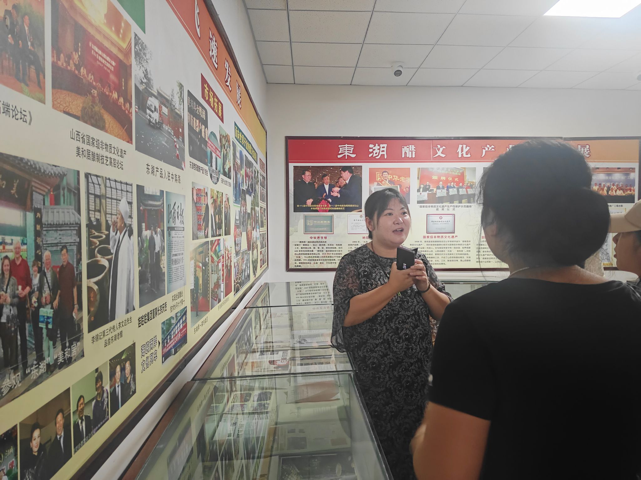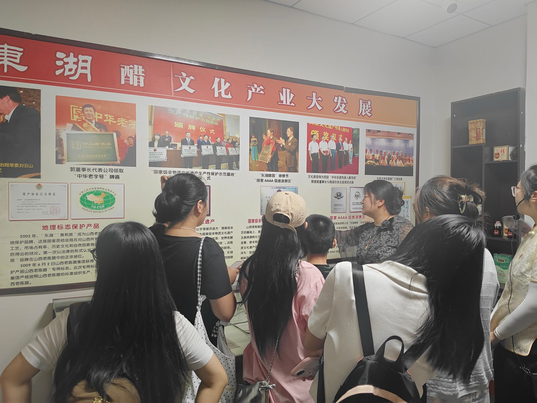 在尹霞的带领下,师生们参观了企业历史文化展厅、手工醋生产车间,还品尝了醋的衍生美食产品。展厅内,丰富的史料和实物生动展现了山西醋业的悠久历史;手工车间里,“夏伏晒、冬捞冰” 的古法工艺让师生们深切体会到岁月沉淀中蕴含的极致匠心,感受到传统技艺与现代生产的碰撞。
