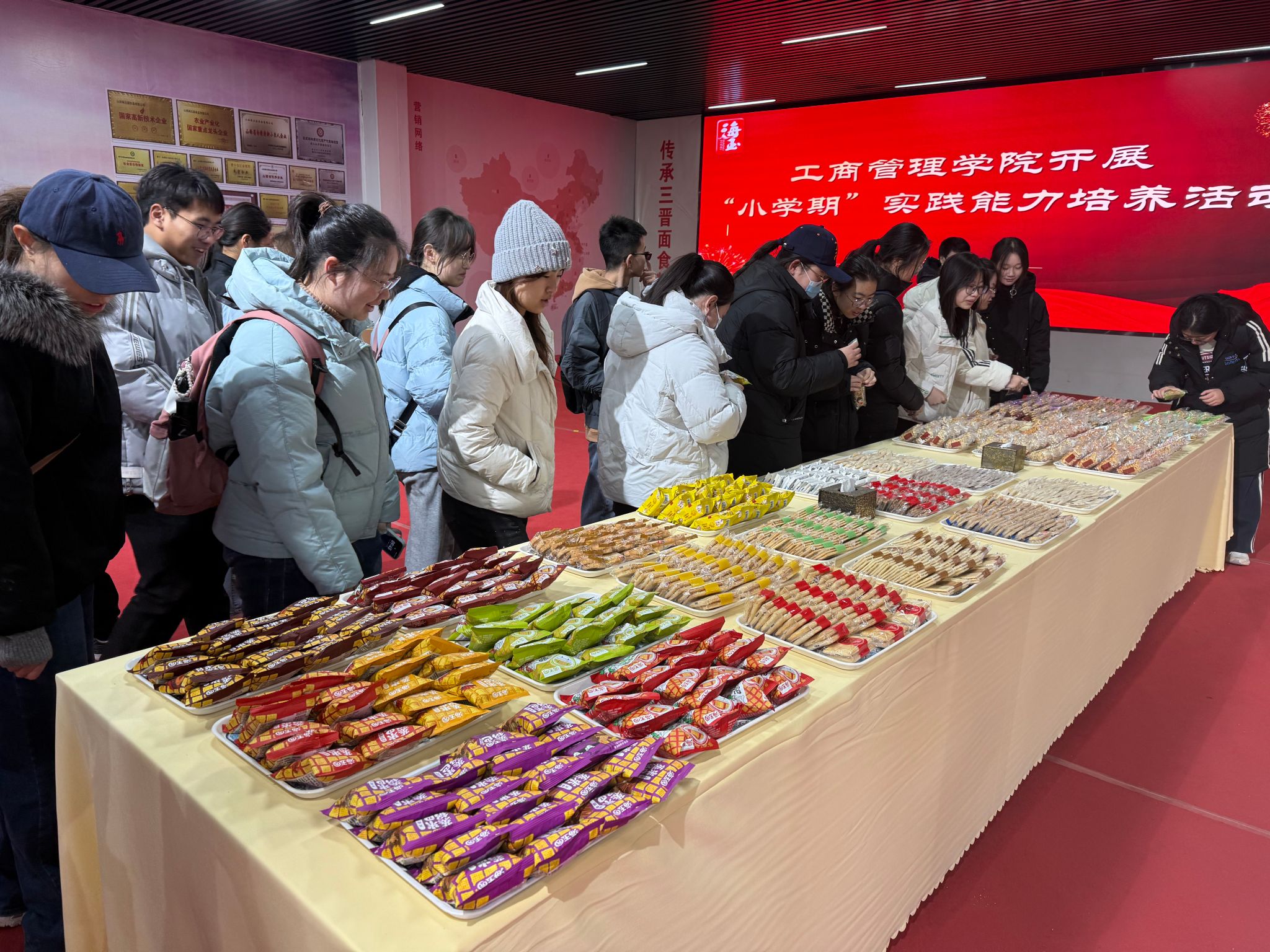 在产品品鉴环节,公司现场展示了包括石头饼、缸炉饼、面包、锅巴等多个系列,师生们从经典传统口味到创新研发品类,直观感受了海玉园产品的品质与特色,详细了解了海玉园丰富的产品矩阵及其背后的研发理念与市场定位。这一环节不仅增强了参观的互动性与趣味性,更让师生们对企业扎实的产品力和持续创新能力有了具体而深刻的认识。