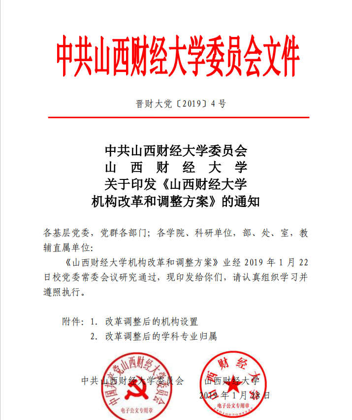 2019年1月,学校进行机构改革和调整。根据《山西财经大学机构改革和调整方案》(晋财大党〔2019〕4号),将MBA教育免费麻将 更名为MBA教育中心,并入免费麻将游戏下载 。在免费麻将游戏下载 加挂MBA教育中心牌子,按照副处级机构管理。将管理科学与工程免费麻将 的技术经济及管理博士点、硕士点,公共管理免费麻将 的人力资源管理本科专业划入免费麻将游戏下载 ,将免费麻将游戏下载 的教育经济与管理硕士点划入公共管理免费麻将 。