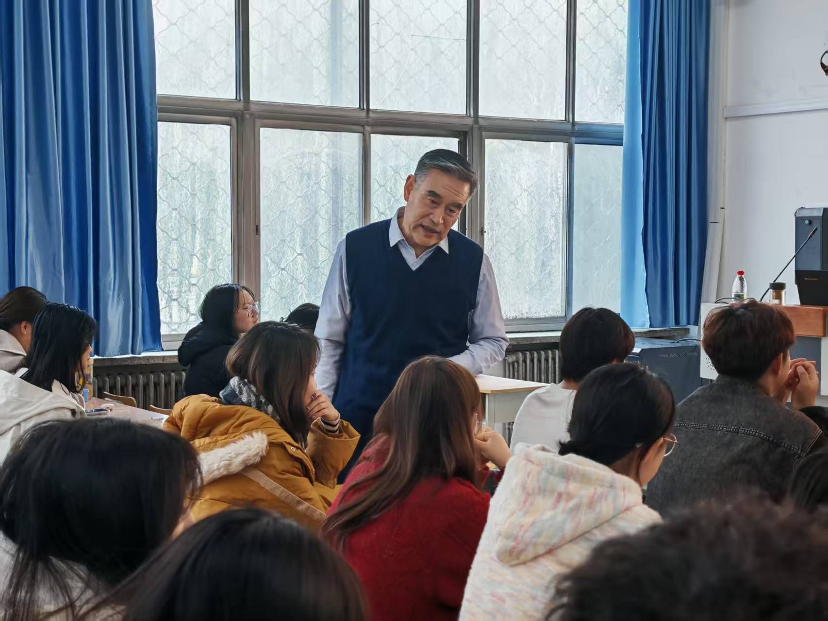 在迎泽校区北图202教室为2025级本科新生举办入学励志专题讲座。山西省生态环境厅离退休干部党总支书记、山西省老年人体育协会副主席、山西省生态环境厅原副巡视员白振兴,应邀为同学们作了《好好学习,努力做一个对社会有用的人》专题讲座。