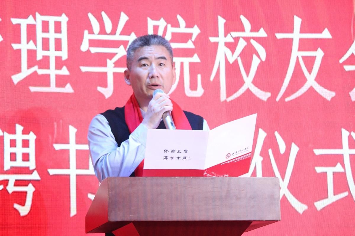 校友会会长郭海明颁发聘书。