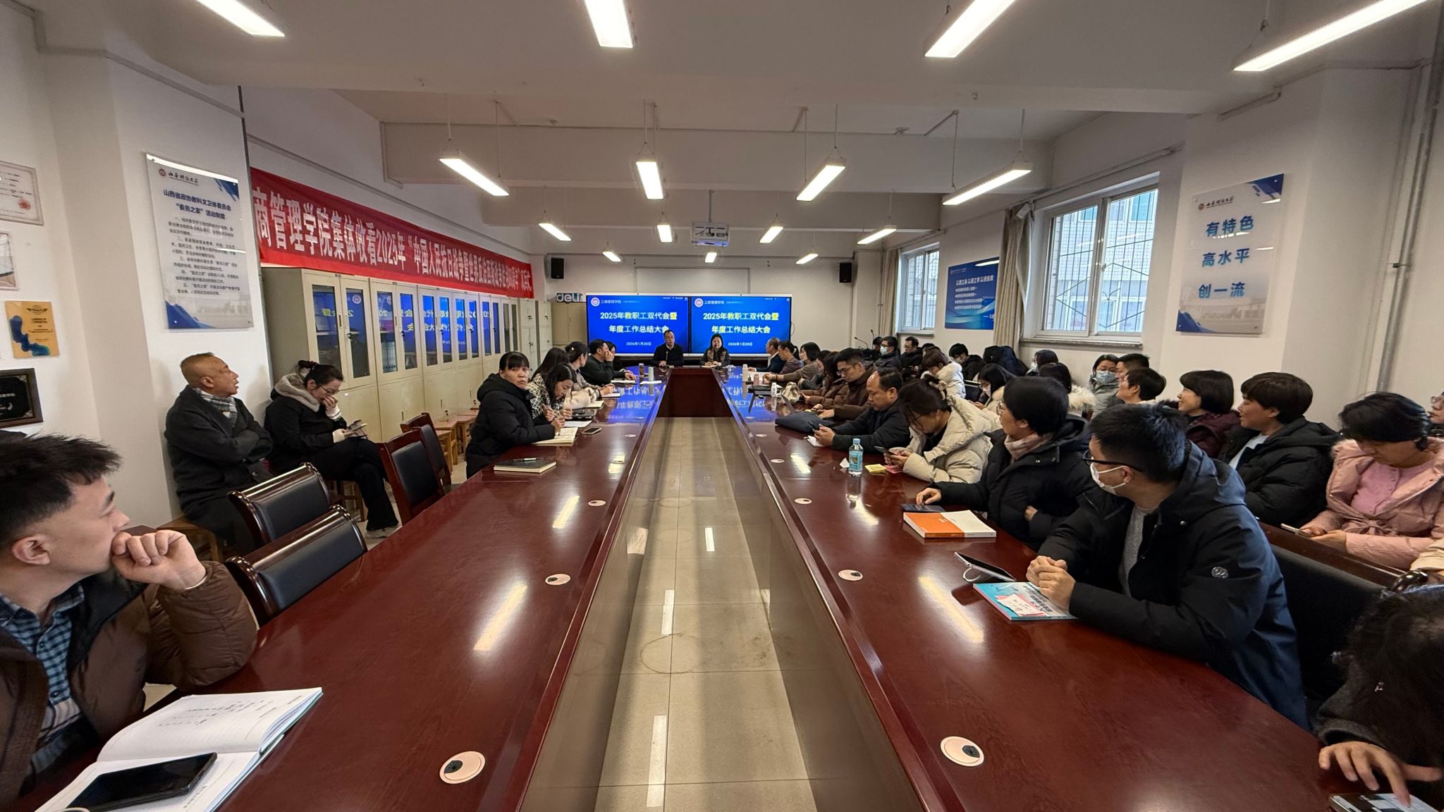 1月20日下午,学院在会议室召开2025年教职工双代会暨年度工作总结大会。学院领导、全体教职工参加会议。