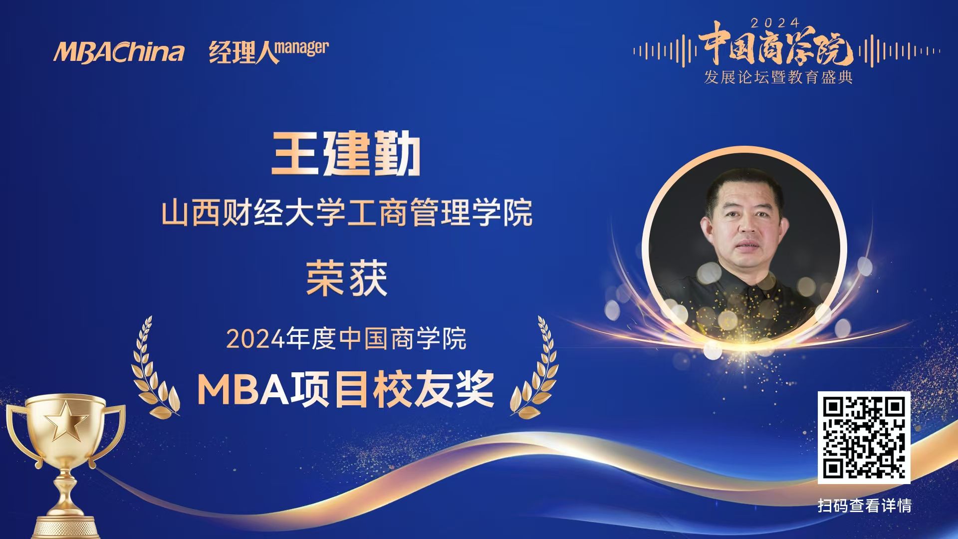 最佳MBA项目等系列重磅奖项榜单,向榜样致敬,共同见证荣耀时刻。我校MBA校友会会长、山西北林建设工程有限公司王建勤,以其卓越的领导力、续的创新精神和对社会的杰出贡献,荣获“2024年度中国商免费麻将
