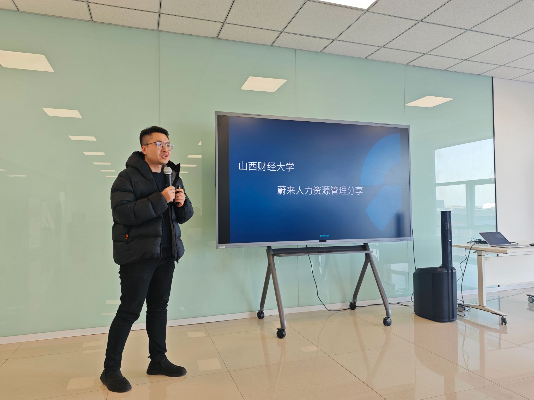 人力资源管理专业20余名师生在张征教授的带领下,走进太原蔚来汽车销售服务有限公司开展“小学期”社会实践活动。